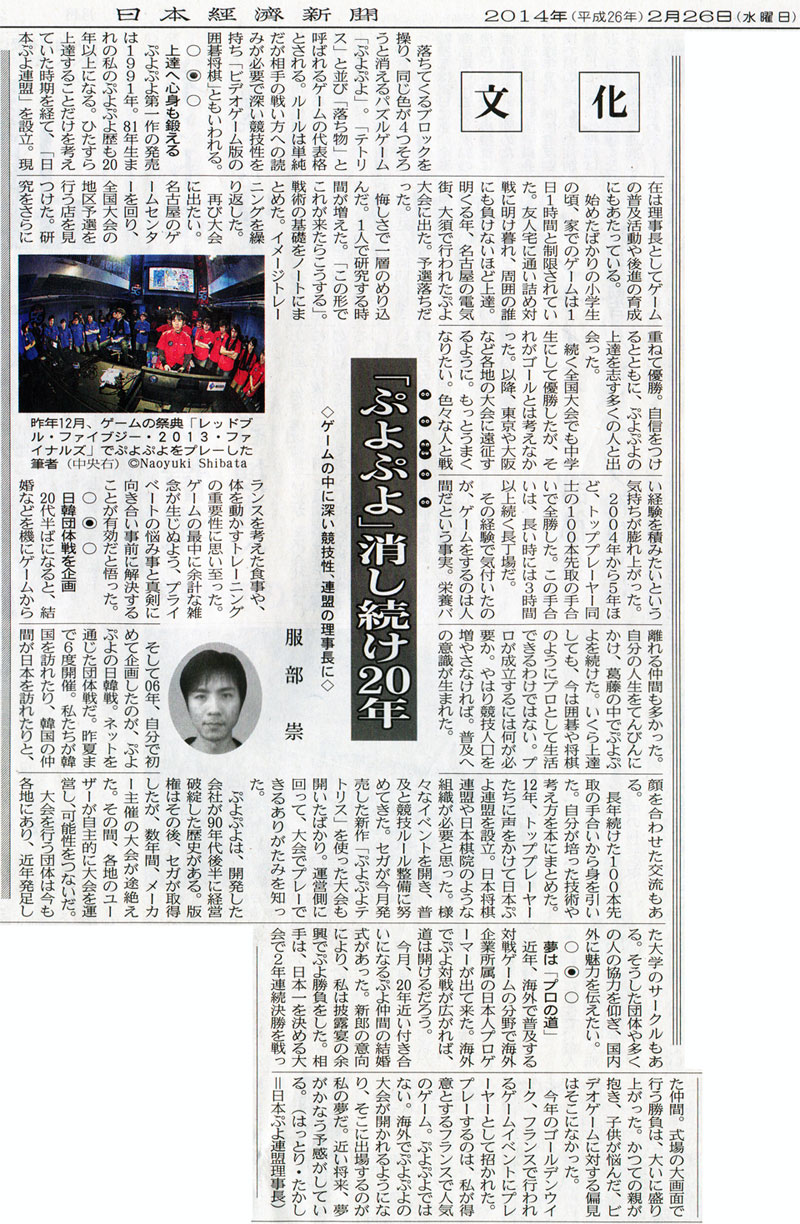2014年2月26日発売の日本経済新聞の朝刊に、